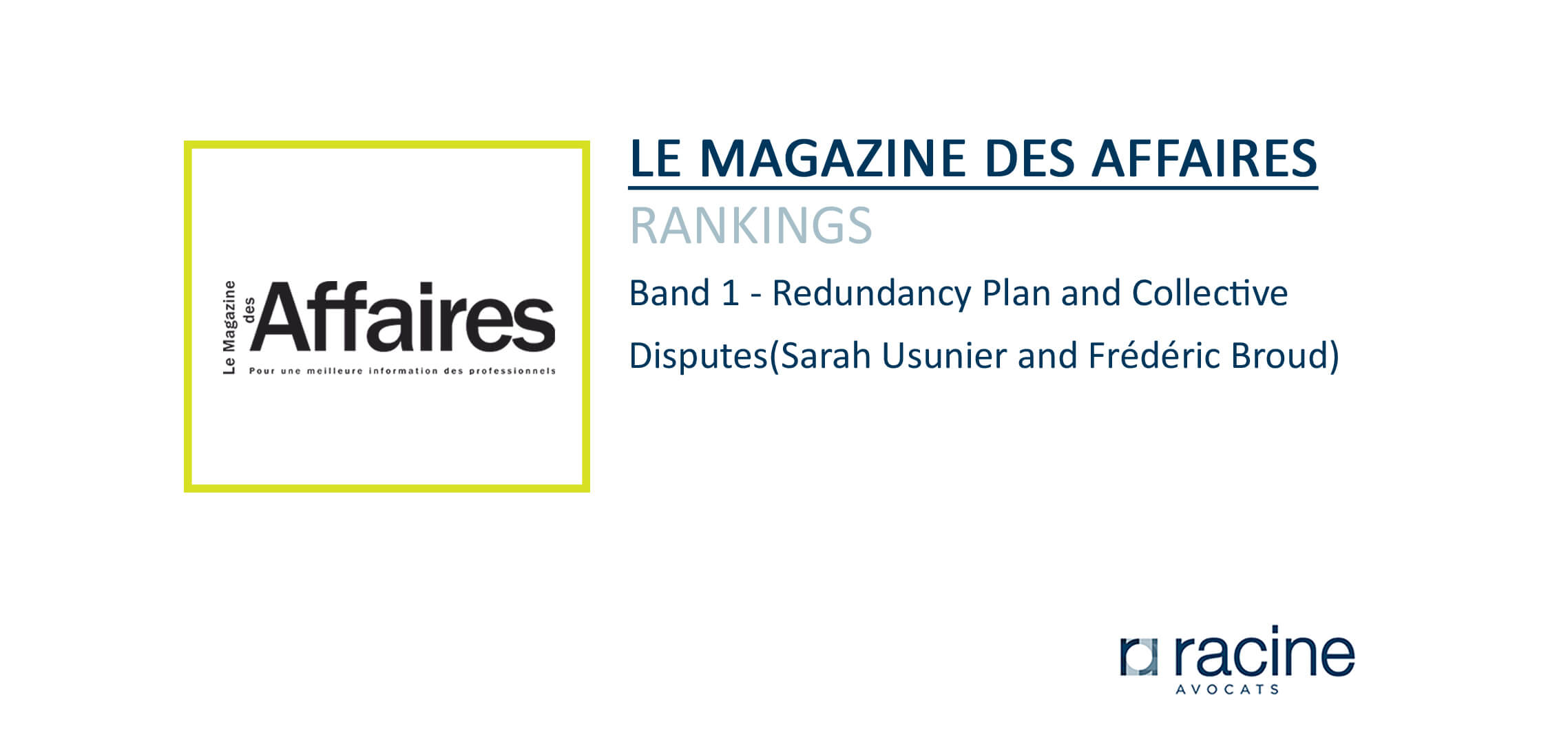 Congratulations to our teams classified in Band 1 for the category “Redundancy Plan and Collective Disputes” (Sarah Usunier and Frédéric Broud))